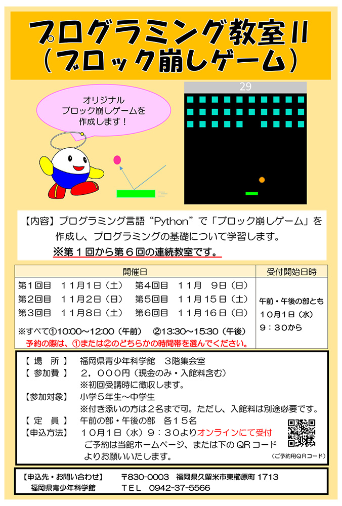 ※当日、子ども一人での参加はできません。 ※機材等の持ち帰りはありません。